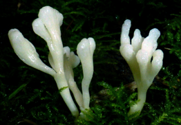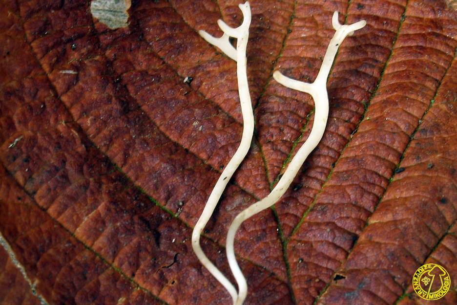 Basidiocarpos de hasta 30 mm de alto y 20 mm de ancho, solitarios o gregarios. Tronco basal desarrollado, alcanza hasta 20 mm de alto y 2 mm de ancho, es subcilíndrico y tiende a ensancharse hasta 3 mm en lo alto, recto o flexuoso, completamente blanco, excepto por una porción subterránea de color crema. Ramas escasas, de aproximadamente 1-1,5 mm de ancho en la base del tronco, lisas o con arrugas longitudinales, con una o dos ramificaciones dicotómicas, divergentes, subparalelas, de sección transversal redondeada a comprimida, a menudo tendiendo a ensancharse en la porción apical hasta 3 (4) mm, con un ángulo predominantemente en forma de U), ápices obtusos y redondeados. Color blanco, blanco beige en ejemplares más viejos. Contexto blanco. Olor y sabor inapreciables. Esporada blanca.Basidiosporas de 3,3-4,4 × 2,8-3,8 micras, subglobosas, ovoides o ampliamente elipsoides, con un apículo prominente,de pared delgada, finamente asperuladas con excrecencias diminutas e irregulares, de hasta 0,4 micras de altura, yodo-negativas, hialinas. Basidios de 15-20 × 4-6 micras, cilíndricos-claviformes, tetraspóricos, con esterigmas de hasta 4 mic rasde longitud, fíbula basal presente. Sistema hifal monomítico. Hifas generativas de hasta 5 micras de ancho. Fíbulas presentes en todos los tejidos.