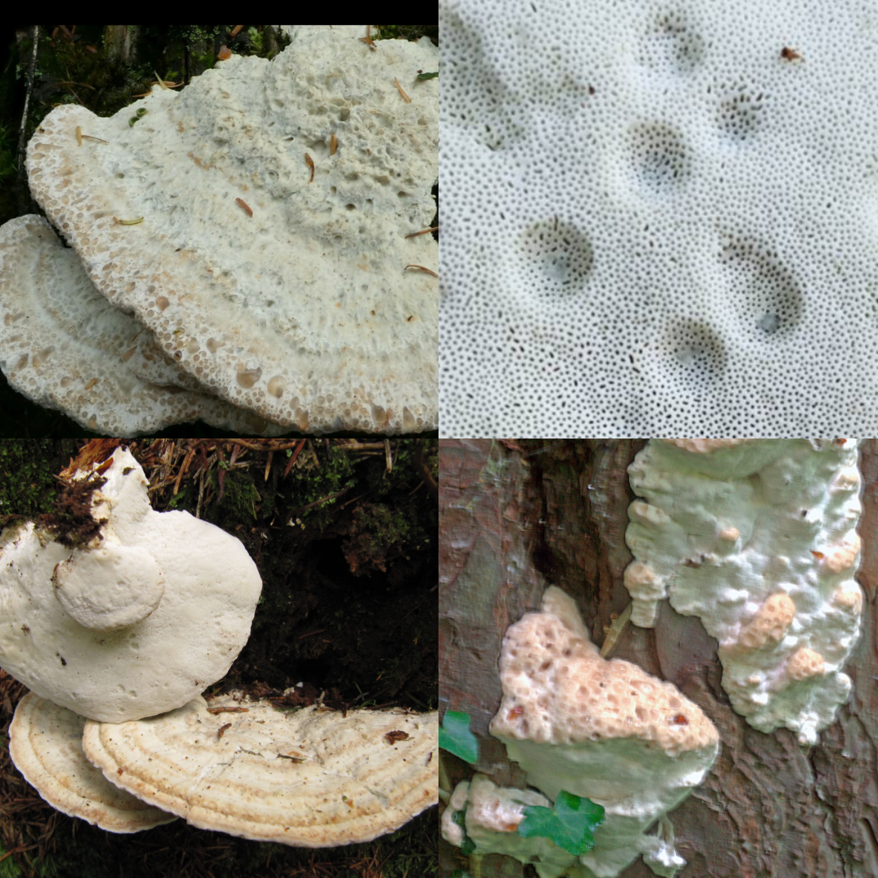 Los basidiocarpos miden 3-10 cm de ancho, con margen superior plegado, color blanco a crema, superficie con depresiones circulares y gútulas; al secarse se vuelven duros y leñosos, con un sabor extremadamente amargo. El contexto es fibroso, blanquecino, 5-10 mm de espesor. El himenóforo es poroide, con poros blancos de 2-4 por mm. Sistema hifal monomítico con hifas generativas hialinas, ramificadas, de 3-6 µm de ancho y con fíbulas; abundantes gútulas cristalinas en el himenio. Las basidiosporas son cilíndricas, hialinas, no amiloides.