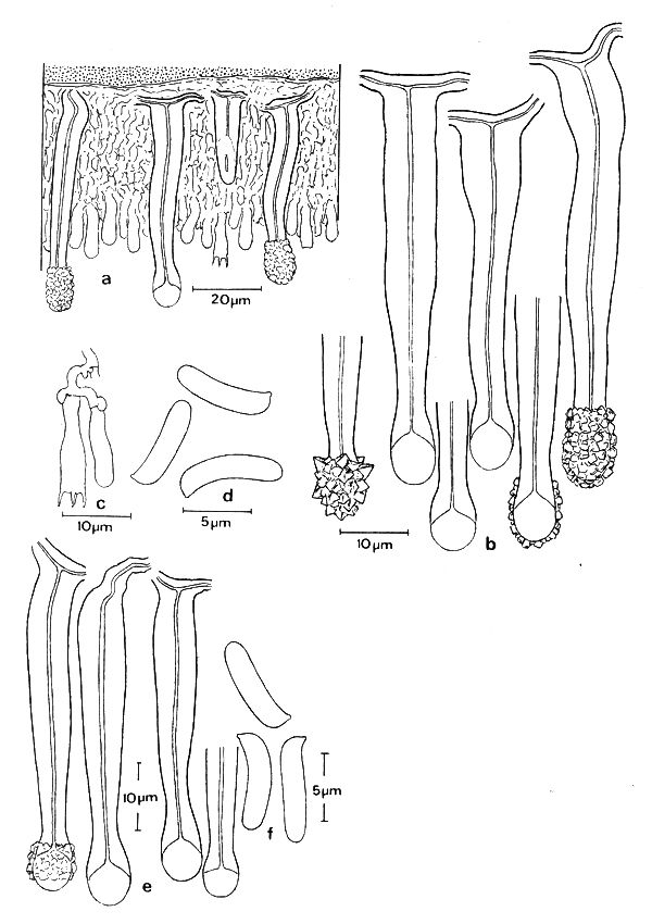 Especies similares: Se distingue claramente de Tubulicrinis borealis y T. strangulatus, que son sus parientes más próximos, por su cistidios fuertemente incrustados y su intensa reacción amiloide azul.