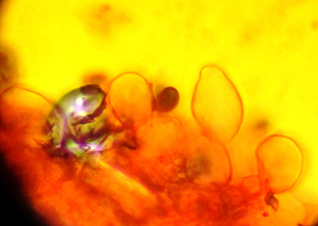 MACROSCOPÍA: Sombrero 7-17 mm de ancho, cónico-campanulado cuando es joven, luego convexo, ligeramente umbonado, a veces con una papila pequeña. Cutícula lisa, mate, estriada translúcida casi hasta el centro, finamente micácea, ligeramente higrófana; cuando está húmeda de color marrón rosado claro; cuando está seca marrón beige con estrías blanquecinas. Carne de color marrón grisáceo, delgada. Olor y sabor bastante desagradables. Láminas blanquecinas cuando son jóvenes, luego de color marrón rosado, marrón rojizo cuando son viejas, ampliamente adnatas, bordes lisos. Pie de 10-30 x 1-2 mm, cilíndrico, generalmente doblado, base a menudo con un pequeño bulbo, hueco, frágil, superficie blanquecino-hialina, lisa, en toda su longitud finamente pruinoso. Esporada marrón púrpura. MICROSCOPÍA: Esporas elípticas, lisas, de color marrón grisáceo, con poro germinativo, de 5.4-6.9 x 3.3-4.1 micras. Basidios ventricosos-clavados con 4 esterigmas, sin fíbula basal. Queilocistidios fusiformes, utriformes, con cristales en el ápice, de 25-33 x 10-15 micras. con células vesiculares a piriformes intercaladas. Pleurocistidios similares. Pileipellis compuesta de células subglobosas a piriformes, de 20-30 10-20 micras. HÁBITAT: Fructificaciones cespitosas o agrupadas, en tocones de madera dura y podrida, raíces, en suelo mezclado con madera.