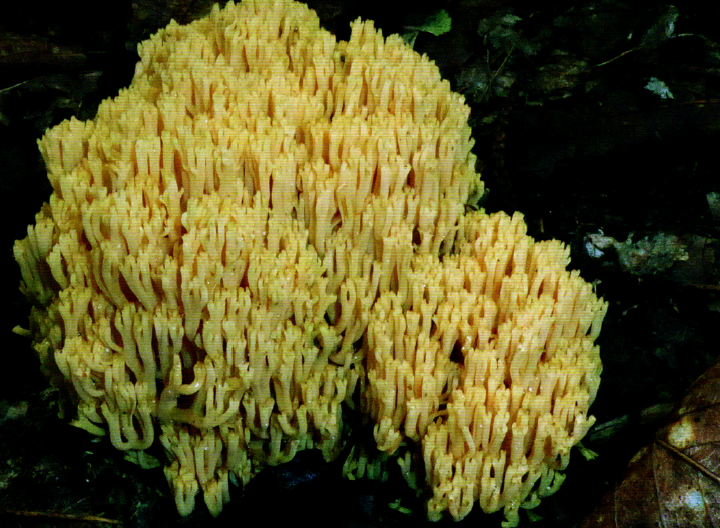 Basidiocarpo: De forma coraliforme, de tamaño medio a pequeño, con alturas que varían entre 30 y 80 mm (excepcionalmente hasta 120 mm) y anchuras de 30 a 80 mm (hasta 100 mm). Presentan una ramificación abundante. Tronco basal: Poco desarrollado, de hasta 20 mm de altura y de anchura similar en la parte superior. Tiene forma obcónica o subcilíndrica, por lo general único, aunque a veces formado por dos o tres elementos soldados entre sí. Su color es blanquecino y se difumina progresivamente hacia el color de los ramos. Ramas principales: Numerosas, de 5 a 10 mm de grosor en el punto de inserción con el tronco, afinándose gradualmente hacia el ápice. Se dividen repetidamente de forma dicotómica o politómica. Las secciones son redondeadas o ligeramente angulosas, de superficie lisa o levemente rugosa en sentido longitudinal. El ángulo de inserción es predominantemente obtuso (en forma de U). Las terminaciones apicales poseen 2 a 4 puntas más o menos romas. Coloración: Las ramas son de un atractivo color amarillo prímula, amarillo yema claro o amarillo azufre, tornándose a veces amarillo ocre en ejemplares maduros. Los ápices son concoloros o algo más claros. La superficie externa no cambia al manipularse. Contexto: Blanco e inmutable, de aspecto marmóreo en tiempo húmedo. Es frágil en las ramificaciones apicales, más firme y fibroso en el tronco. Su olor es ligeramente herbáceo y su sabor suave. Esporada: Color amarillo ocre. Basidiósporas: De 7,2–10,0 × 2,9–4,2?µm. Son ligeramente lenticulares, oblongas a subamigdaliformes en vista frontal, subcilíndricas de perfil, con apículo visible y pared delgada. Ornamentación de verrugas bajas y redondeadas, dispuestas irregularmente y con cortas conexiones que forman pequeñas crestas; claramente cianófilas, negativas al yodo, amarillentas en agua. Basidios: De 40–55?(60) × 7–9?(10)?µm, de forma cilíndrico?claviforme, tetrasporados, con esterigmas de aproximadamente 6?µm y con conexión por abrazadera basal. Los basidiólidos son frecuentes, de menor tamaño, especialmente en el ancho. Sistema hifal: Monomítico, formado por hifas generativas cilíndricas y septadas. En el subhimenio: cortas y entrelazadas, a veces aglutinadas, de 2,5–4,0?µm de grosor, con pared hialina o débilmente amarillenta. En las ramas y el tronco: más gruesas (hasta 15?µm), subparalelas hacia el exterior y entrelazadas en el interior, de forma cilíndrica a fusiforme, ocasionalmente dilatadas, con pared de hasta 1?µm de espesor, de color hialino a ligeramente amarillento. Pueden encontrarse hifas ampolliformes en los septos y hifas trombopleurógenas de forma esporádica. Micelio basal: Compuesto por hifas generativas de hasta 6?µm de grosor, paralelas o entrelazadas, con presencia de hifas ampolliformes en los septos (hasta 10?µm), abundantes hifas trombopleurógenas (3–5?µm), con contenido gris?amarillento, y ocasionales elementos acantodendroides y células globosas parduscas. Se observan conexiones en abrazadera.