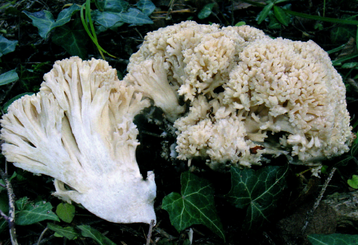 Basidiocarpos coraloides, ricamente ramificadas, con una altura de hasta 90 mm y un ancho de 65-105 mm. Tronco basal bien desarrollado, generalmente único aunque a veces formado por dos o tres elementos fusionados, de hasta 50 mm de alto y 40-60 mm de ancho en su parte superior, blanco y con forma obcónica, con la base redondeada. Ramas principales numerosas, de 5-15 mm de grosor en el punto de inserción al tronco, que se ramifican y afinan progresivamente hacia el ápice. En los ejemplares jóvenes los extremos están cerrados, recordando la forma de una coliflor, y luego se vuelven más o menos divergentes, con ramificaciones politómicas de sección redondeada, lisas o débilmente rugosas en sentido longitudinal por debajo de las bifurcaciones (observables con lupaLos ángulos entre las ramas son predominantemente agudos (en forma de “V”), con ápices romos o terminados en 2-3 puntas obtusas. El color de las ramas es blanco lechoso en toda la superficie y por largo tiempo; solo al madurar, el depósito de esporas recubre el cuerpo fructífero dándole un tono crema-ocre uniforme. Los ápices, en ejemplares jóvenes, presentan un ligero matiz amarillo pálido que pronto pasa a crema claro y después a blanco puro. La superficie externa no cambia de color al tacto ni al manipularla. El contexto es blanco e inmutable, con aspecto marmorizado en el tronco cuando la humedad es alta. Es frágil en las ramas apicales y más blanda pero compacta en el tronco. Olor débil, con nota herbácea; sabor dulce y suave. Esporada amarillo ocre claro. Basidiósporas de 6,0–10,0 (10,5) × 2,8–4,8 µm, con valores medios, de forma oblonga o subcilíndrica, con apículo prominente y ligera depresión suprailar; pared de hasta 0,3–0,4 µm de grosor. Superficie levemente rugosa o irregular, con verrugas pequeñas, poco elevadas, dispuestas irregularmente, aisladas o unidas, fuertemente cianófilas, no amiloides (negativas al yodo), y de color crema amarillento claro en agua. Basidios de 30–50 × 7–9 µm, claviformes, principalmente tetrasporados, con esterigmas curvados de hasta 6 µm, sin conexiones de fíbulas en la base. Sistema hifal monomítico, formado por hifas generativas cilíndricas y septadas, de hasta 12 µm de ancho en las ramas superiores y 18 µm en el tronco, con pared de hasta 1 µm (hasta 1,5 µm en el tronco). En el tronco las hifas son paralelas o entrelazadas, y en las ramas altas más irregulares, con depósitos cristalinos puntiformes o en pequeñas placas polimorfas. En el tronco hay numerosas hifas ampolliformes en los septos y hifas trombopleurógenas de hasta 6 µm de ancho, con contenido amarillento y cianófilo. Las hifas ampolliformes pueden alcanzar 16 µm, con contenido granuloso. El micelio basal está formado por hifas generativas cilíndricas, de hasta 4 µm de grosor, pared delgada e hialina. Fibulas ausentes en todos los tejidos.