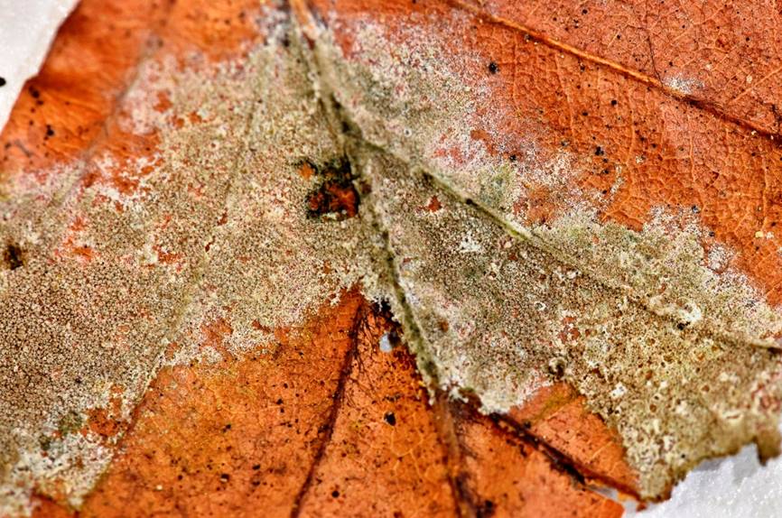 Basidiocarpo efuso adherente, similar a un moho. Himenóforo liso a granular, de gris verdoso a marrón oliva. Margen del mismo color que el himenóforo, discreto. Rizomorfos ausentes o raramente presentes cerca del sustrato. Subículo del mismo color que el himenóforo, muy delgado y a veces ausente. Hifas subiculares hialinas, con fíbulas, de paredes delgadas, sin incrustaciones, de 2,5-4 micras de ancho. Hifas subhimeniales hialinas, con fibulas, de paredes delgadas, sin incrustaciones, de 3-5 micrasde ancho Cistidios hialinos, apicalmente estrechos y parcialmente incrustados, de hasta 70 micras de largo, que también surgen parcialmente de los rizomorfos. Basidios hialinos, con fíbula basal. Basidiósporas parduscas, irregularmente redondeadas a elípticas tanto en vista frontal como lateral, a menudo lobuladas 7-8,5 micras, espinas de hasta 2 micras de largo.