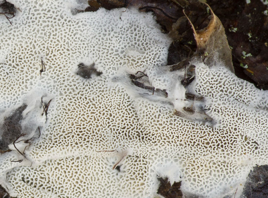 Basidiocarpo efuso, débilmente adherente, blando, quebradizo al secarse, con poros angulares de 1-4 por mm y hasta 1-2 mm de espesor. Color blanco a amarillo pálido. Hifas fibuladas, de 2–8 µm de diámetro. Basidios urniformes, de 20–30 (35) × (6) 7–10 (11) µm, con 2–4 esterigmas. Basidiósporas globosas a subglobosas, de 4.5–6 µm de diámetro, no amiloides y de pared delgada. Alimentación y sustratos: Especie saprofita; madera de angiospermas y gimnospermas, hojarasca, musgos, piedras y madera trabajada.