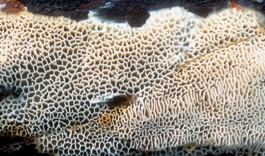 Género Antrodia: Basidiocarpo anual, resupinado a efuso-reflejo, con píleos imbricados frecuentemente. Himenóforo tubular, superficie de color blanco-crema, crema-ocráceo o amarillo citrino, poros redondeados, angulares a sinuosos, oblicuos, lameniformes a subdedaloides. Sistema de hifas dimítico. Hifas generativas con fíbulas en los septos, de paredes delgadas a engrosadas, dominan las esqueléticas, de paredes gruesas. Cistidios ausentes; a veces se observan algunos cistidiolos. Basidios claviformes, con fíbula en la base. Basidiósporas de cilíndricas a alantoides, lisas, de paredes delgadas, no amiloides. Fructifica en madera de coníferas o planifolios y provoca pudrición parda.