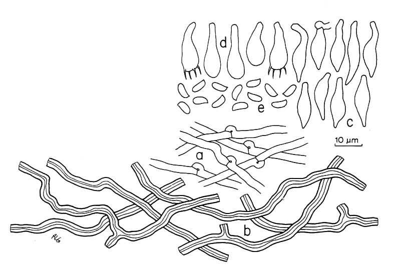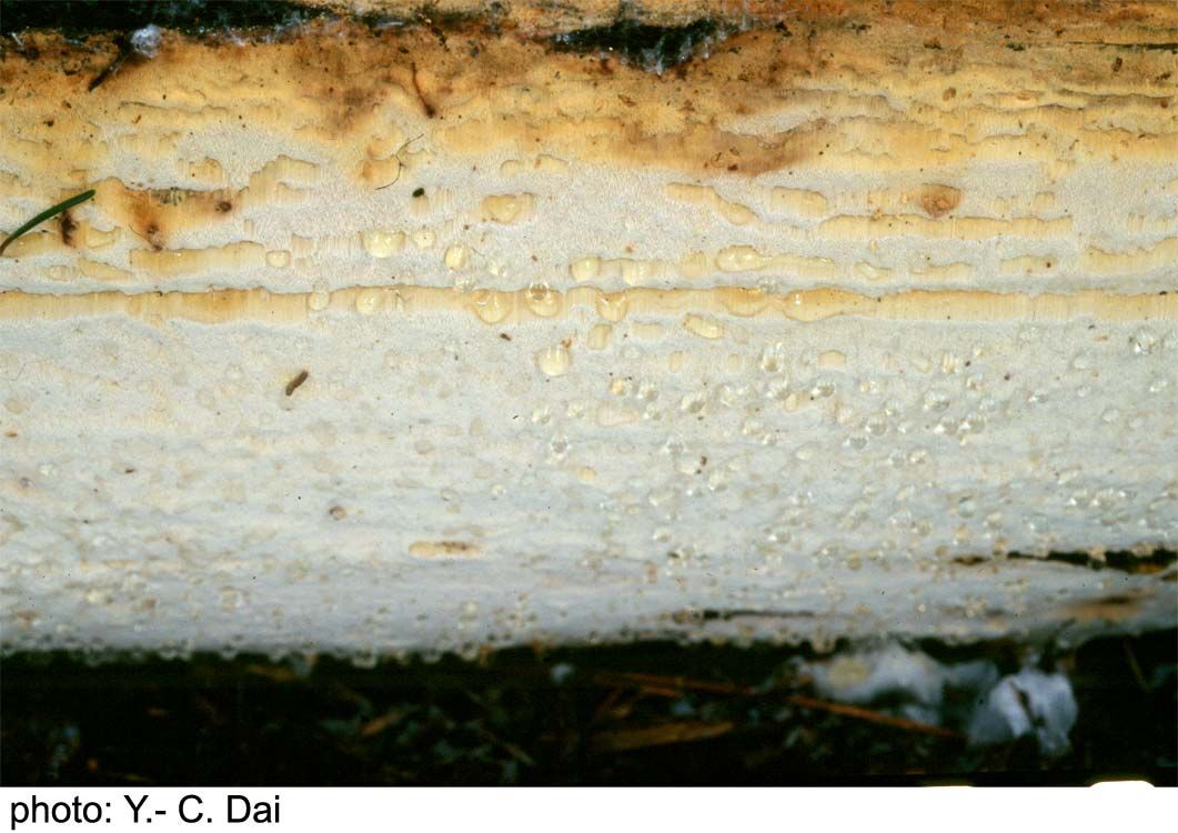 Basidiocarpos anuales a perennes, resupinados, con un fuerte olor dulce en fresco, duros, duros y quebradizos al secarse, efusos, hasta 15 cm de extensión y 6 mm de espesor. Superficie de los poros de color crema a beige claro, oscureciéndose ligeramente a marrón anaranjado pálido con la edad o el secado. Poros 4-7 por mm, circulares; disepimentos gruesos y enteros. Margen estrecho, estéril, a menudo tornándose marrón rojizo y resinoso. Subículo color crema, más pálido que la capa tubular, no zonado, hasta 1 mm de espesor. Capa tubular concolora con la superficie de los poros, en ejemplares más viejos como si estuviera empapada con una sustancia resinosa, hasta 6 mm de espesor. Sabor resinoso, amargo. Sistema hifal dimítico. Hifas generativas en el subículo difíciles de discernir, de paredes delgadas, hialinas, con fíbulas, 2-4 micras de diámetro. Hifas esqueléticas en el subículo predominantes, de paredes gruesas, hialinas, no septadas, con ramificación rara, de 2-5 micras de diámetro, a menudo débilmente amiloides. Hifas en la trama similares.Cistidios ausentes. Cistidiolos fusoides, 18-24 x 5-6 micras, con una fíbula basal. Basidios claviformes, 4 esterigmas, 16-20 x 6-7 micras, con una fíbula basal. Basidiósporas cilíndricas, ligeramente curvadas, hialinas, lisas, negativas en el reactivo de Melzer. 4-5,5 x 1,5-2 micras.
