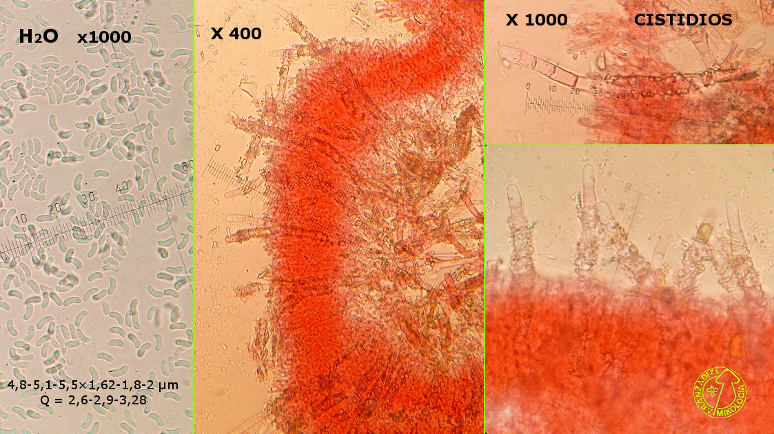 MACROSCOPÍA: Basidioma resupinado, efuso, débilmente adherido al sustrato, 0,3 -1 mm de espesor, agrietado al secarse. Himenóforo liso a tuberculado, pubescente debido a la proyección cistidios, anaranjado. Subículo delgado o poco desarrollado, concoloro o más pálido que la superficie del himenio. Margen abrupto, pruinoso, ligeramente fibriloso, blanquecino, rizomorfos ausentes. MICROSCOPÍA: Sistema de hifas monomítico (pseudodimítico). Hifas simplemente septadas, paredes delgadas o gruesas; las subhimeniales 2-4 micras de diámetro; las hifas subiculares de 4-7 (-9) micras de diámetro, normalmente ramificadas en ángulos amplios, paredes gruesas, hialinas. Cistidios presentes (septocistidios), incrustados de células cortas. Basidios estrechamente claviformes, 15-23 x 3.5-4.5 micras, con 4 esterigmas y sin fíbula basal, esterigmas 3 micras de largo. Esporas cilíndricas en vista frontal, subalantoides o alantoides en vista lateral, 4.5-6.5 x 1.5-2 micras, lisas, hialinas, IKI-. HÁBITAT: Madera de planifolios.
